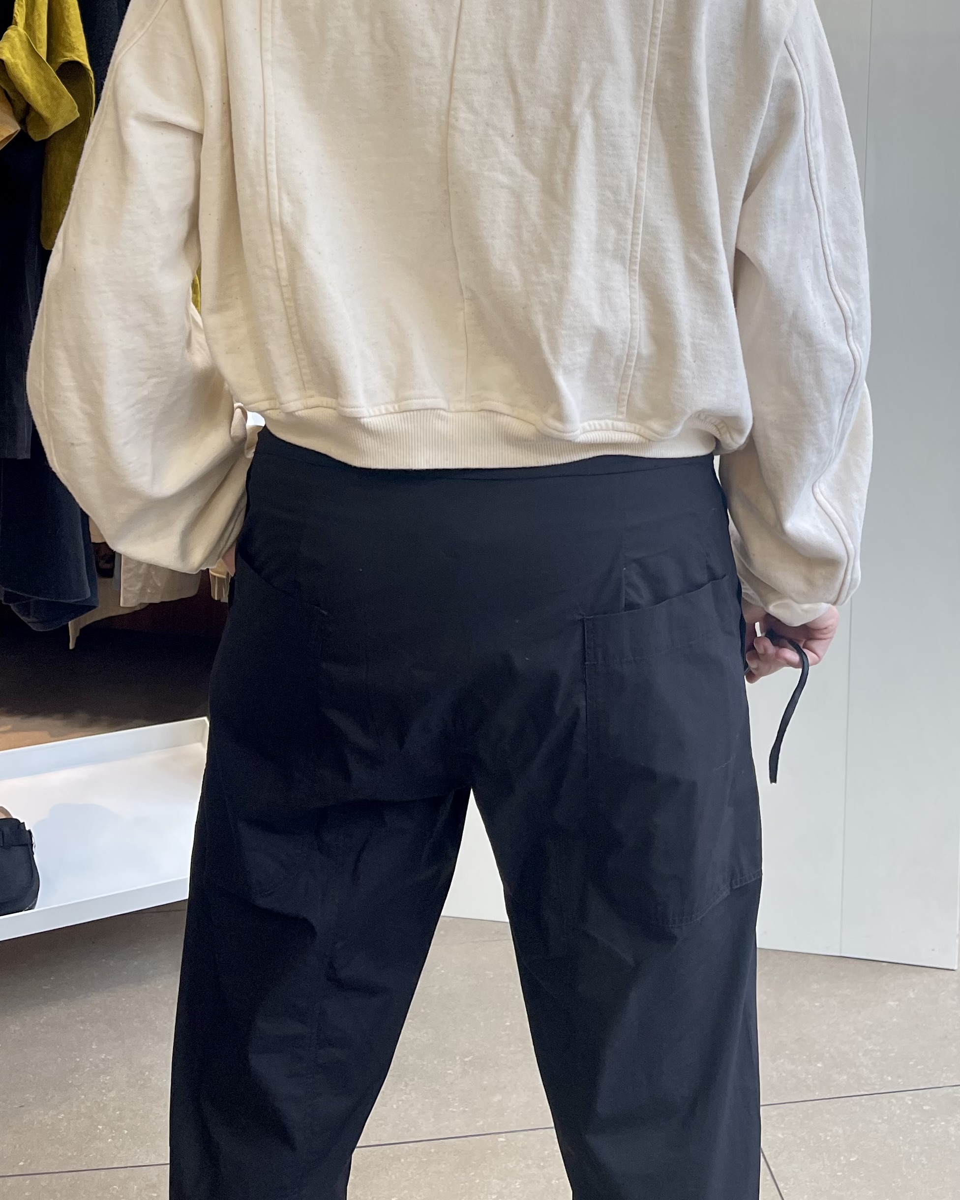 Minimaliste en apparence, ce pantalon cigarette noir signé Rundholz révèle toute sa sophistication dans la précision de sa coupe et la qualité de sa matière.