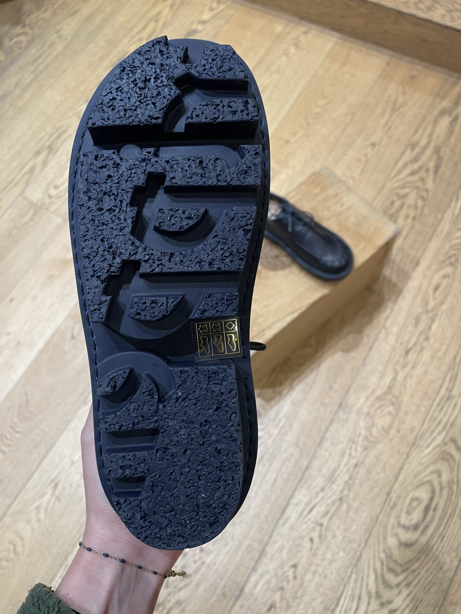 Le laçage minimaliste à deux œillets conserve une ligne épurée, tandis que la semelle épaisse en caoutchouc, signature de Trippen, assure confort, stabilité et durabilité. Les coutures apparentes renforcent l’aspect authentique et travaillé du modèle.